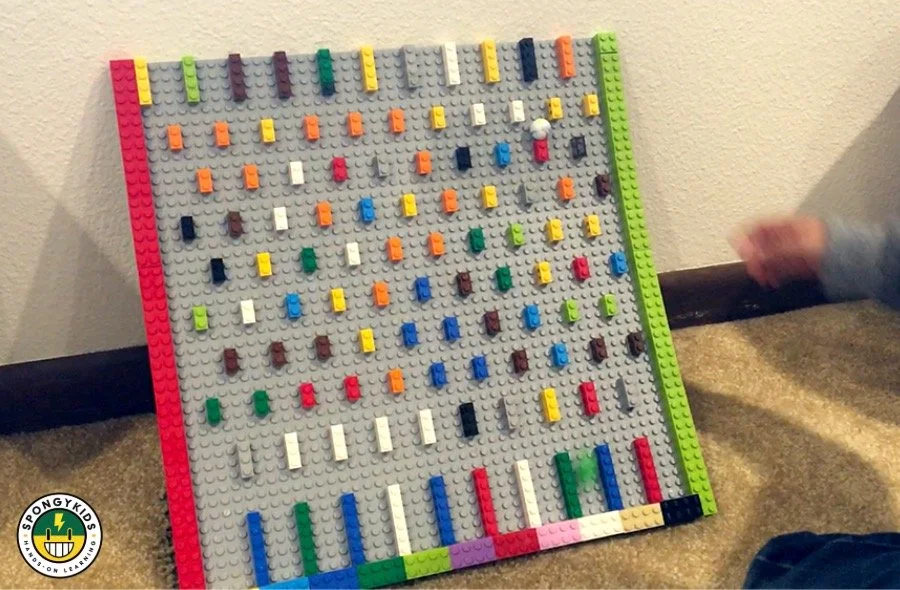 We needed a lot of LEGO brick pieces to build this marble run! I wish I could create something similar to an actual Galton board. It was fun for my son! You should tilt the board when running the marbles; if it’s too straight, the marbles tend to jump out of the course.
