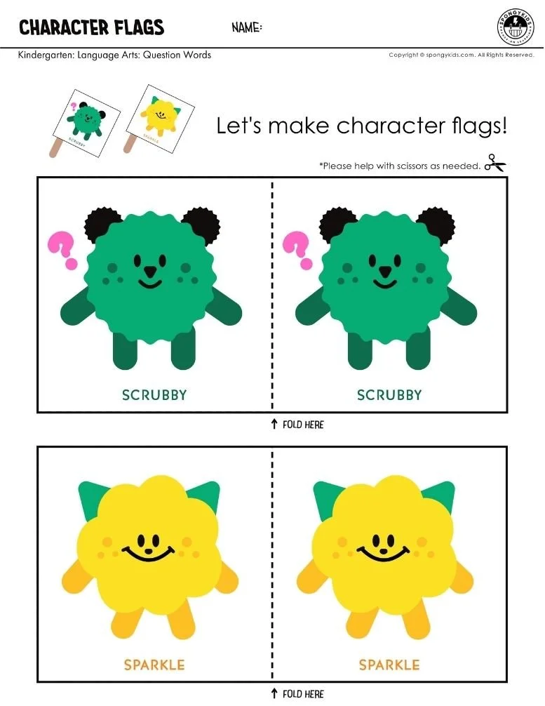 Before we dive into learning about question words, let's get creative! Students will make flags for our two characters. (Scrubby and Sparkle)